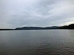 Справа по курсу горный хребет: село Малмыж слева у утёса, село Верхний Нерген справа.