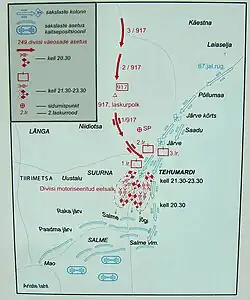 В ночном бою у деревни Техумарди столкнулись 2-й батальон 67-го потсдамского гренадерского полка (360 человек) и отряды 307-го отдельного истребительно-противотанкового дивизиона 249-й Эстонской стрелковой дивизии (всего 670 человек).