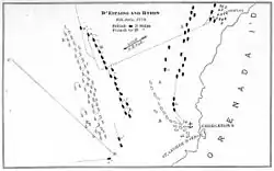 | Albion (74) | George Bowyer | Languedoc (80) | Boulainvilliers | флагман, вице-адмирал д'Эстен; | |