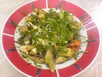 | Мыраница | Приправа или закуска, состоящая из кислого молока (йогурта), толчёного чеснока, красного перца |