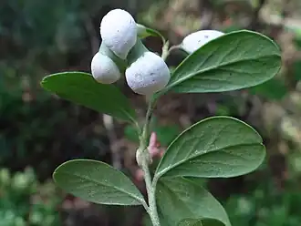 Exobasidium vaccinii Woronin — возбудитель очень распространённого заболевания листьев брусники, вызывает образование белых подушкообразных наростов на молодых листьях вечнозеленых рододендронов (Rhododendron maximum L., Rhododendron catawbiense Michx.) и листопадных рододендронов в естественных местах их произрастания[1].