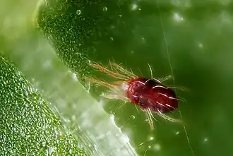 Повреждаемые листья желтеют, деформируются, буреют и засыхают. За вегетационный период развиваются до 10 поколений клеща.