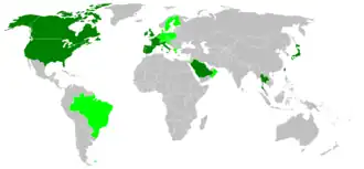 тёмно-зелёным отмечены страны, где были зафиксированы случаи заболевания людей, светло-зелёным — случаи коровьего бешенства