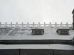 В основном здание облицовано светло-жёлтым кирпичом[7], цоколь сложен из камней с неровными сколами красного и серого оттенков. К южному фасаду высота цоколя увеличена. Первый этаж двухэтажной части обработан смесью кирпичной крошки и цементной штукатурки[8]. Угловые цепочки рустов, пояса и зубчатые наличники окон сделаны из светло-серой и белой штукатурки, дымовые трубы сложены из красного кирпича. Решётки балконов и террасы, гребень на коньке крыши, ограждение лестницы выкованы из железа[9].