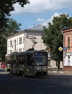- По улице проходят трамвайный маршрут № 43.