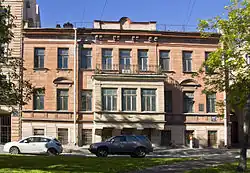 - Дом № 2. В 1834—1835 годах архитектором Х. Х. Беком был построен трёхэтажный дом, позже надстроенный четвёртым этажом. Помещения первого этажа изначально были распланированы под торговые помещения, магазины здесь работают до сих пор. В этом доме с 1817 по 1830 год жил выдающийся мастер эпохи классицизма — архитектор В. П. Стасов. Здесь же в 1891—1898 годах жил В. В. Докучаев, основоположник отечественного почвоведения. В первой половине 1890-х годов, а затем в 1905—1909 годах здесь снимал квартиру профессор-химик (впоследствии академик) Д. П. Коновалов. С 1891 по 1919 год здесь жил профессор университета А. А. Иностранцев, с именем которого связаны геологические исследования севера России[24]). [23]