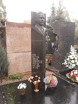 Умер 5 сентября 1988 года в Москве, где и похоронен на Новодевичьем кладбище.