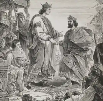 - ↑ Voss I. Herrschertreffen im frühen und hohen Mittelalter: Untersuchungen zu den Begegnungen der ostfränkischen und westfränkischen Herrscher im 9. und 10. Jahrhundert sowie der deutschen und französischen Könige vom 11. bis 13. Jahrhundert. — Böhlau, 1987. — S. 48.