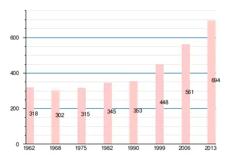 | 1962 | 1968 | 1975 | 1982 | 1990 | 1999 | 2006 | 2008 | 2011 | 2012 | 2013 |