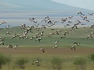 Самый пик перелёта птиц приходится на конец апреля — начало мая, когда большая часть озёр ещё покрыта льдом. Это уникальное и захватывающее зрелище: тысячные стаи разномастных уток покрывают водную гладь, на берегу и кромке льда сотенными табунами толпятся гуси, по берегу снуют вездесущие и неугомонные кулики, и среди этого многообразия контрастно выделяются десятки белых лебедей. Над озёрами в это время стоит гомон от всевозможных видов птиц, который дополняется не менее звучными песнями окружающей степи — голосами журавлей и жаворонков. Такое единовременное скопление разнообразия пернатых привлекает орнитологов со всего мира.
