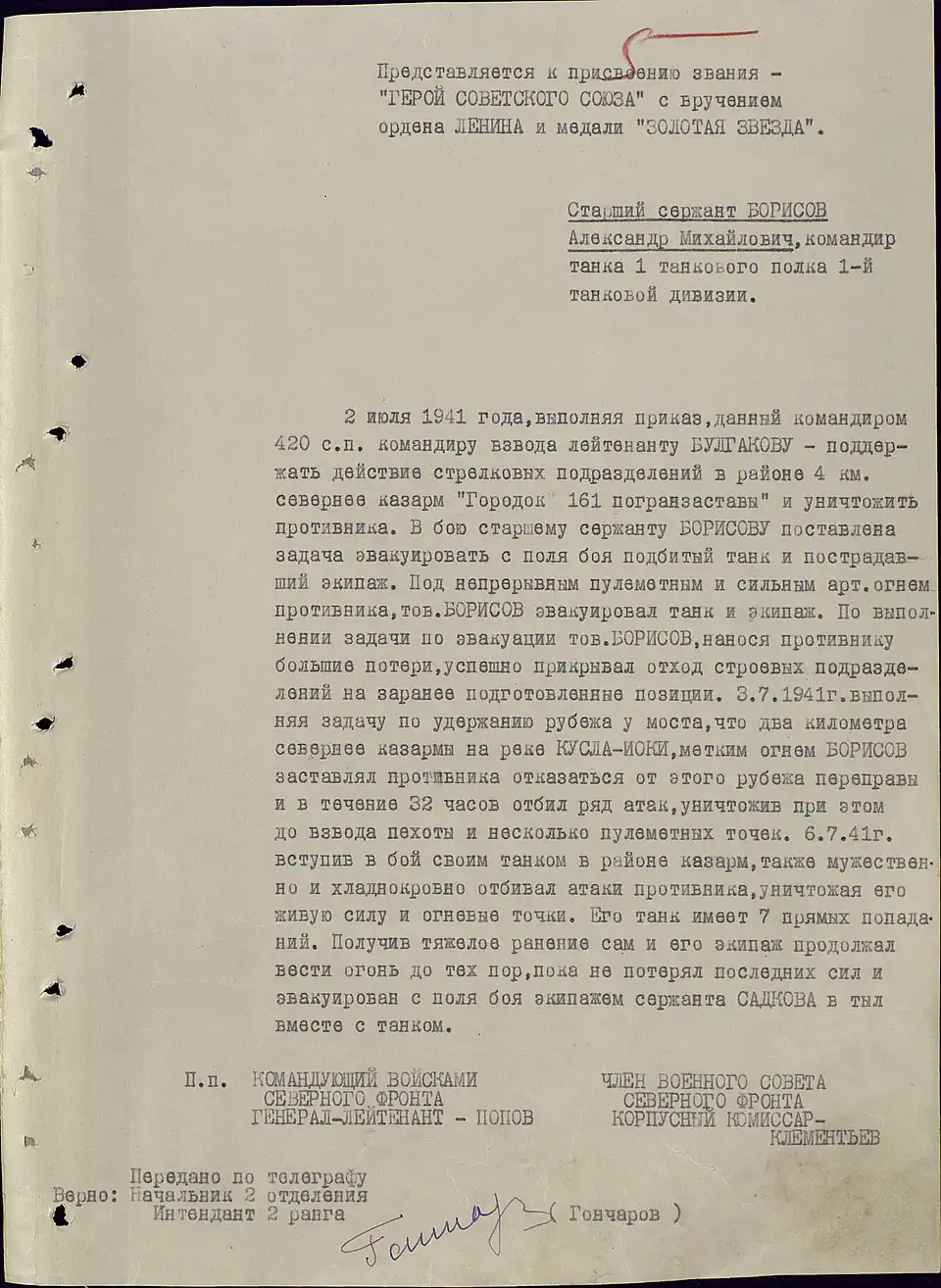 | Представление к званию Героя Советского Союза старшего сержанта А. М. Борисова | |||