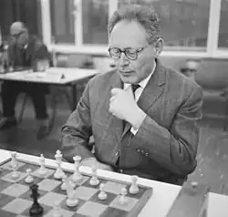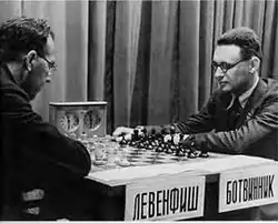 Михаи́л Моисе́евич Ботви́нник (4 августа [17 августа] 1911, Куоккала, Выборгская губерния, Великое княжество Финляндское, Российская империя — 5 мая 1995, Москва, Россия) — советский шахматист, гроссмейстер (1950), доктор технических наук. 6-й в истории шахмат и 1-й советский чемпион мира (1948—1957, 1958—1960, 1961—1963). Гроссмейстер СССР (1935), арбитр по шахматной композиции (1956), заслуженный мастер спорта СССР (1945), 6-кратный чемпион СССР (1931, 1933, 1939, 1944, 1945, 1952), абсолютный чемпион СССР (1941), чемпион Москвы (1943/44). 6-кратный победитель Олимпиад в составе сборной СССР (двукратный победитель в личном зачёте).
