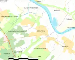 Коммуна расположена приблизительно в 510 км к юго-западу от Парижа, в 18 км юго-восточнее Бордо[1].