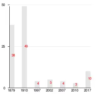 | 1997[14] | 2002[15] | 2007[16] | 2010[17] | 2017[1] |