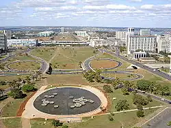 Проект строительства новой столицы, получивший название «пилотный план» (порт. Plano Piloto), был разработан архитектором Лусио Костой. Учитывая рельеф местности и зоны затопления водохранилища Параноа «пилотный план» фактически является адаптацией аналогичного проекта, предложенного Луисом Крулсом в 1893 году[13]. Большинство административных и общественных зданий в городе построено по проекту известного бразильского архитектора Оскара Нимейера.