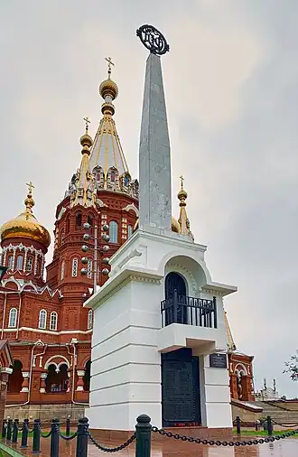 Обелиск на фоне собора