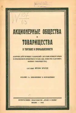 - Акционерные общества и товарищества в торговле и промышленности / Сост. И. Л. Брауде. — 2-е изд. — М., 1926.
