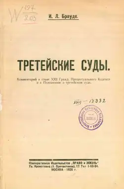 - Третейские суды. Комментарий к главе XXII Гражданского процессуального кодекса и к Положению о третейском суде. — М., 1926.