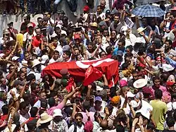 Государственные похороны Брахми состоялись 27 июля на кладбище Джеллаз. Гроб с телом Брахми, покрытый флагом Туниса, был пронесён по улицам столицы. В похоронах приняли участие тысячи человек, призвавшие к свержению правительства, после чего полиция применила слезоточивый газ к протестующим.