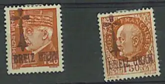 Подобные марки существуют и для Бретани, которая была освобождена войсками союзников в августе—сентябре 1944 года. Однако точные даты этих выпусков неизвестны. Надпечатки, сделанные на французских марках на бретонском языке, гласят: