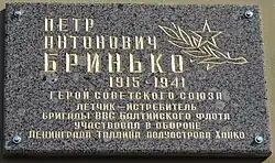 - ↑ Воробьев Е. Морские лётчики — Герои Советского Союза. Бринько Пётр Антонович. // Морской сборник. — 2009. — № 11. — С. 91.