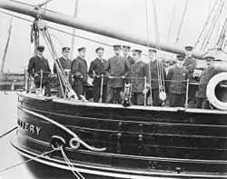 Адмиралтейство не позволило Скотту поднять над «Дискавери» белый флаг Королевского ВМФ, поэтому судно пришлось регистрировать в Королевском яхт-клубе Харвича[68].