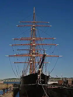 Самой большой статьёй расходов было экспедиционное судно, которое было построено специально для Скотта. Судно было задумано Маркэмом в рамках его общей стратегии антарктической экспедиции. Используемые в предыдущих экспедициях китобойные суда, как английской, так и норвежской постройки, не устраивали председателя КГО. Он решился на строительство первого в Великобритании специализированного научно-исследовательского судна[58]. Маркэм на первых порах думал обратиться в Норвегию к Колину Арчеру, но чиновники Адмиралтейства настояли, что национальная экспедиция должна пользоваться английским кораблём[59]. Постройкой судна занималась фирма Dundee Shipbuilders Company, оно обошлось в 51 000 фунтов стерлингов (в том числе 10 322 фунта за паровую машину), что эквивалентно 5 263 000 в ценах 2018 года (1 065 000 за паровую машину)[57].Корабль получил название «Дискавери» («Открытие») в честь угольщика Дж. Кука и вспомогательного транспорта экспедиции Нэрса. Это был последний в истории британского судостроения деревянный трёхмачтовый барк[57]. Спуск на воду состоялся 21 марта 1901 года, церемонию крещения проводила леди Маркэм[60].