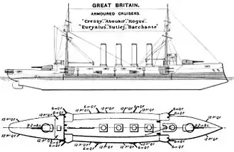До 1898 года британское Адмиралтейство ограничивалось только созданием бронепалубных крейсеров. Но затем, когда технологии Круппа сделали возможным добавление и бортовой брони, достаточно прочной, чтобы выдержать попадание 6" стального снаряда, при сохранении прежних размерений и водоизмещения, в Британии вернулись к классу броненосного крейсера. Общая архитектура и силуэт у типа «Кресси» такие же как у бронепалубных крейсеров типа «Диадем».