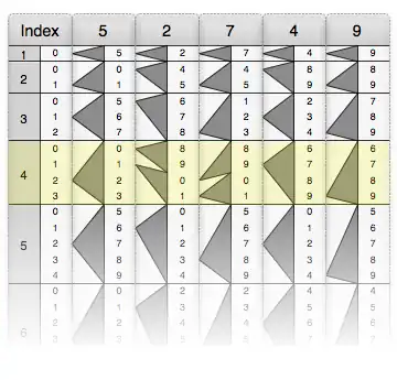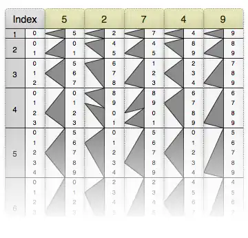 Расположим пять линеек, по одной на каждую цифру числа 52749, рядом друг с другом и рядом с главной линейкой «Index»: