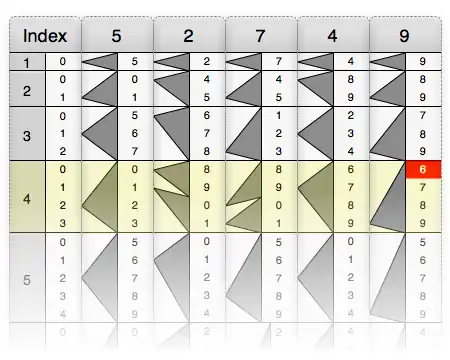 Мы начинаем с верхнего номера в последнем столбце выбранной строки: