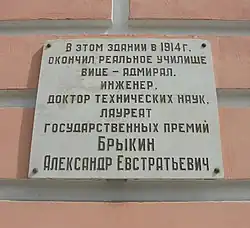 Мемориальная доска А. Е. Брыкину в Пензе