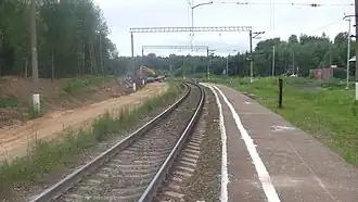 Расписание 2013 Станционное здание, заброшено Сломанная вывеска, вид на запад Платформа, вид на восток Вид на восток Вид на запад Строительство второй платформы