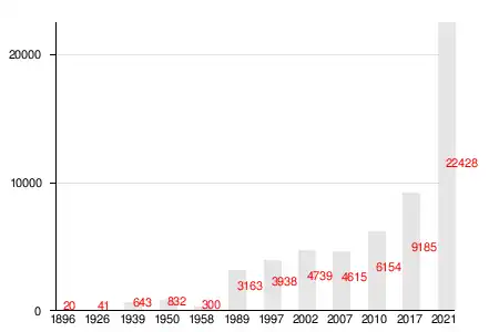 | 2002[23] | 2007[24] | 2010[25] | 2017[26] | 2021[27] | 2025[1] |
