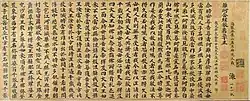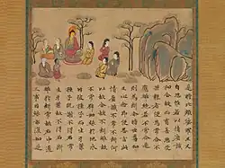 Примерно в начале нашей эры началось создание нового литературного жанра сутр с акцентом на идеале бодхисаттвы, широко известного как Махаяна («Великая колесница») или Бодхисаттваяна («Колесница бодхисаттвы»)[73]. Самые ранние из этих сутр назывались не «Махаяна», а вайпулья (обширные, обширные) сутры или гамбхира (глубокие, глубокие) сутры[74]. Существуют различные теории возникновения Махаяны. По одной версии «это было в первую очередь текстовое движение, сосредоточенное на обнаружении, проповедовании и распространении махаянских сутр, которое развивалось в рамках традиционных буддийских социальных и институциональных структур и никогда от них не отходило[75]. Ранние дхармабханаки (проповедники, читавшие сутры) были влиятельными фигурами и распространяли эти новые тексты в буддийских общинах[74]. Многие из махаянских сутр были написаны на санскрите (гибридных формах и на классическом санскрите), а затем переведены на тибетский и китайский, сформировав соответствующие каноны ( Кангьюр и Тайсё Трипитака), которые затем разработали свои собственные текстовые истории. Санскрит был принят буддистами на севере Индии в кушанскую эпоху, а санскритская буддийская литература стала доминирующей текстовой традицией в Индии вплоть до упадка буддизма[73].
