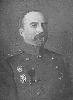 Чины: подпоручик гвардии (1887), поручик (1891), штабс-капитан (за отличие, 1893), капитан (1900), полковник (1906), генерал-майор (за отличие, 1913).