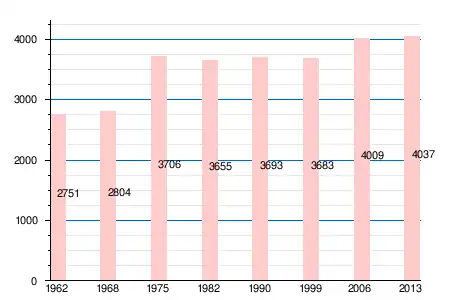 Население коммуны в 2011 году составляло 3994 человека[7], в 2012 году — 4017 человек[8], а в 2013-м — 4037 человек[6].