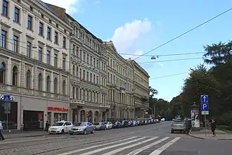 • 10 — доходный дом (архитектор Янис Бауманис, 1876). Дом принадлежал Кристапу Морбергу, крупному латышскому домовладельцу и филантропу, оставившему свою собственность в дар Латвийскому университету. В этом доме жили: общественный и политический деятель, депутат Сейма и редактор газеты «Латвияс Вестнесис» Я. Весманис; ректор Латвийского университета, офтальмолог Янис Рубертс; декан Латвийского Университета, инженер-технолог А. Банкин. До 1904 года здесь находился художественный салон «Kunstverein». До конца 30-х годов: дирекция и операционный зал Рижского Юнион-Банка, нотариальная контора Я. Крукланда, магазин зубоврачебных принадлежностей Я. Гринблата, типография и производственные помещения товарищества «Латвияс Дарзс», оптовая торговля М. С. Дейча. После Второй мировой войны здание было отдано под студенческое общежитие Латвийского университета, после 1991 года — служебная гостиница.