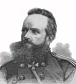 При взятии штурмом крепости Карса, в ночь с 5 на 6 Ноября 1877 года, принял в самую трудную минуту начальство над войсками, атаковавшими укрепление Канлы и, лично ведя их на штурм, занял это укрепление, затем с примерным самоотвержением вошел один в казарму, занятую неприятельским баталионом и склонил начальника онаго к сдаче.