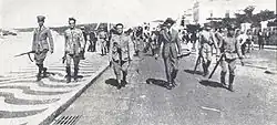 На рассвете следующего дня большинство солдат и офицеров покинуло Копакабану, в которой из 301 человека осталось всего 29 бойцов. Линкоры «Сан-Паулу» и «Минас Жерайс» обстреляли форт, гидропланы произвели его бомбардировку. Правительство потребовало безоговорочной капитуляции гарнизона, однако лишь один из восставших предпочёл сдаться властям. Остальные 28 человек, во главе которых встал лейтенант Антониу ди Сикейра Кампус, отвергли предложение о сдаче крепости. Ими было принято решение выйти из форта и в открытом бою встретиться с противником. План дальнейших действий группы был разработан лейтенантом Эдуарду Гомешом, будущим министром авиации Бразилии.