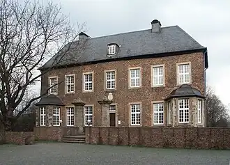 Барочное главное здание было построено в XVII веке. В ходе последних реставрационных работ были обнаружены остатки деревянного подъемного моста, разобранного, вероятно в XVIII веке. Под главным зданием обнаружен средневековый подвал с кухней и камином.