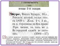 В 1865 году имя Павла Карловича упоминается в «Справочной книге о купцах», где он представлен как «ревельский цеховой, 55 лет, в купцах с 1839 года». В эти годы старший сын Павла Карловича, — Павел Павлович — названный в честь отца, учился в Петропавловском коммерческом училище, чтобы уже в 1868 году стать компаньоном отца в ведении семейного дела. В 1874 году уже именно Павел Павлович приобретает большую часовую фабрику, расположенную в швейцарском городе Ле-Локле.
