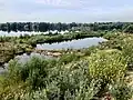 Среди кустарников и древостоя выделяются[3]: облепиха крушиновидная, тополь бальзамический, осина, ива белая, ива козья, берёза повислая, буддлея Давида и тополь белый.
