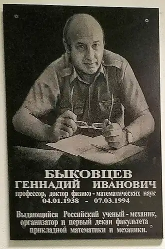 - ↑ На факультете ПММ начала свою работу Международная школа-семинар «Современные проблемы механики и прикладной математики», посвященная 70-летию Быковцева Г. И. Дата обращения: 17 августа 2016. Архивировано 17 августа 2016 года.