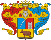 В золотом поле щита, чёрный одноглавый орел с красными глазами, языком и лапами, держащий в правой лапе серебряный с золотой рукоятью меч. На груди орла золотой круглый щит с изображением бычьей головы. Над щитом дворянский коронованный шлем. Нашлемник - три чёрных страусовых пера, на среднем золотой лапчатый крест, под которым золотой полумесяц рогами вниз. Намёт: черный с золотом. Девиз: "ЗА ВЕРУ И ПРАВДУ" чёрными буквами на золотой ленте[2].