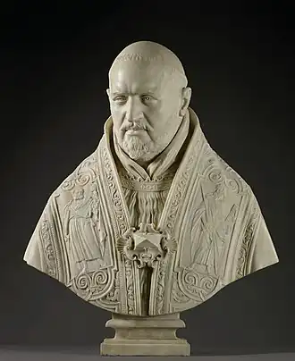 Два бюста папы Павла V выполнены Джованни Лоренцо Бернини из каррарского мрамора, копия второго имеется также в бронзе. Первый бюст папы Павла V Бернини создал, как считается, в 1618 году, он хранится ныне в галерее Боргезе в Риме[1]. Спустя несколько месяцев после смерти Павла V в 1621 году его племянник, кардинал Шипионе Боргезе заказал 23-летнему Бернини официальный мраморный бюст папы Павла V. В 1632 году Бернини выполнил в пандан к нему бюст самого кардинала Боргезе. Второй бюст Павла V с недавнего времени экспонируется в Музее Гетти в Лос-Анджелесе[2]. Бронзовая копия второго бюста работы Себастиано Себастиани хранится в Государственном музее искусств в Копенгагене[3][4].