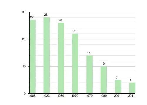 1905[3] 1923 1959 1970 1979 1989[4] 2001 2011[1]