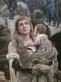 Картина была написана Хелльквистом в Мюнхене в 1881—1882 годах, спустя более пяти веков после памятных событий 1361 года, поэтому в её деталях заметно немало анахронизмов. К числу их следует, к примеру, отнести собаку породы такса, которая заметна у левой пивной бочки. Порода эта выведена была лишь в XVI веке, а на острове Готланд появилась не ранее XVII столетия[8][9]. Исторически в Висбю никогда не строили и подобных жилых зданий, которые художник наблюдал во время своего путешествия по северной Германии. Супруга бургомистра Висбю на картине стоит с непокрытой головой, хотя известно, что замужние женщины XIV века в Швеции могли появиться на людях только в головных уборах[8]. Не соответствуют изображаемой эпохе и некоторые элементы доспехов и вооружения, к примеру, возглавляющий отряд наёмников рыцарь одет в шлем второй половины XIV века, но ножные латы его относятся скорее ко второй половине XV столетия. Первое упоминание о евреях в Швеции появляется в документах намного позже, в XVI веке[8], и присутствие в Висбю изображённого на картине иудея представляется маловероятным[9].