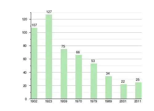 | 1902[3] | 1923[4] | 1959[5] | 1970[5] | 1979[6] | 1989[7] | 2001[8] | 2011[9] |