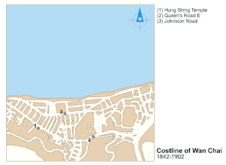 Самым древним поселением являлась китайская деревня рыбаков и крестьян, раскинувшаяся вокруг храма Хунсин (Хуншэн). Тогда этот храм располагался возле берега бухты, а большинство местных жителей поклонялись морским божествам[3]. С ростом британской администрации, базировавшейся в городе Виктория (нынешние районы Центральный и Адмиралтейство), Ваньчай привлекал всё больше китайских переселенцев, работавших прислугой и батраками (кули). Они селились вдоль улицы Куинс-роуд-ист, а на месте нынешней улочки Спринг-гарден-лейн вырос квартал «красных фонарей» (чтобы привлечь внимание посетителей, бордели обозначали большими уличными знаками, из-за чего квартал стал известен как «Big Number Brothels»)[4].