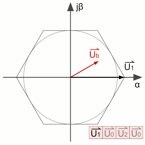 Базовые векторы для коммутации типичного трёхфазного моста при векторной ШИМ (см. рис. 1)
